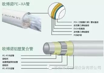① 欧博诺 Comfort Pipe PLUS PE-Xa管材基层,按照EN ISO 15875标准生产,具有高的耐久性、抗冲击性和耐应力开裂等特性。 ② 第二层结构起到了粘接 PE-Xa 基管和阻氧层的作用。 ③ 第三层阻氧层防止氧气渗入辐射供暖供冷系统,EVOH 阻氧层不渗氧,并已达到或超出 DIN 4726 标准要求,这将有效防止管材渗氧对金属部件的氧化。 ④ 第四层结构起到了粘接 PE外保护层和阻氧层的作用。 ⑤ 第五层 PE外保护层为了防止现场施工中较大的机械应力或管材外壁划伤等造成的阻氧层的损伤而导致的氧气渗漏,尤其是在混凝土楼板表面的铺设安装。